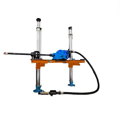 氣動架柱1回轉和行走采用獨立給進馬達,給進力大,速度易調節,裝卸鉆桿更簡單,大大降低工人勞動強度